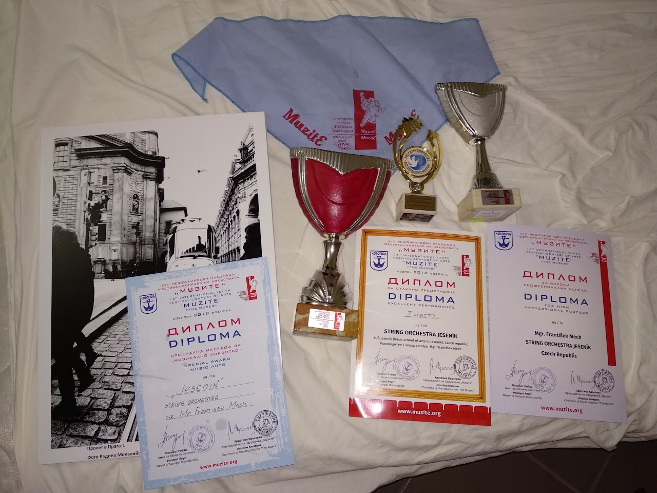- Bulharsko - Sozopol - mezinárodní festival "Muzite" 2018 - 1. místo v soutěži, zvláštní cena pro dirigenta Františka Mecha, zvláštní cena od Confucius institute v Burgasu a zvláštní cena Ruského institutu v Burgasu